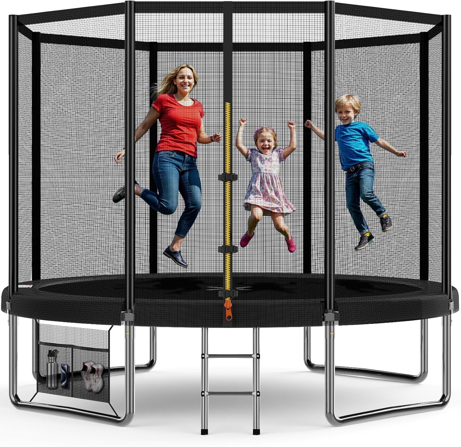 KIDUKU Trampolín diámetro 244/305 cm - Juego Completo con Red de Seguridad, Escalera, Cubierta de Bordes, Anclaje de Suelo y Accesorios para Exterior jardín Cama elástica Infantil Capacidad de Carga 150 kg