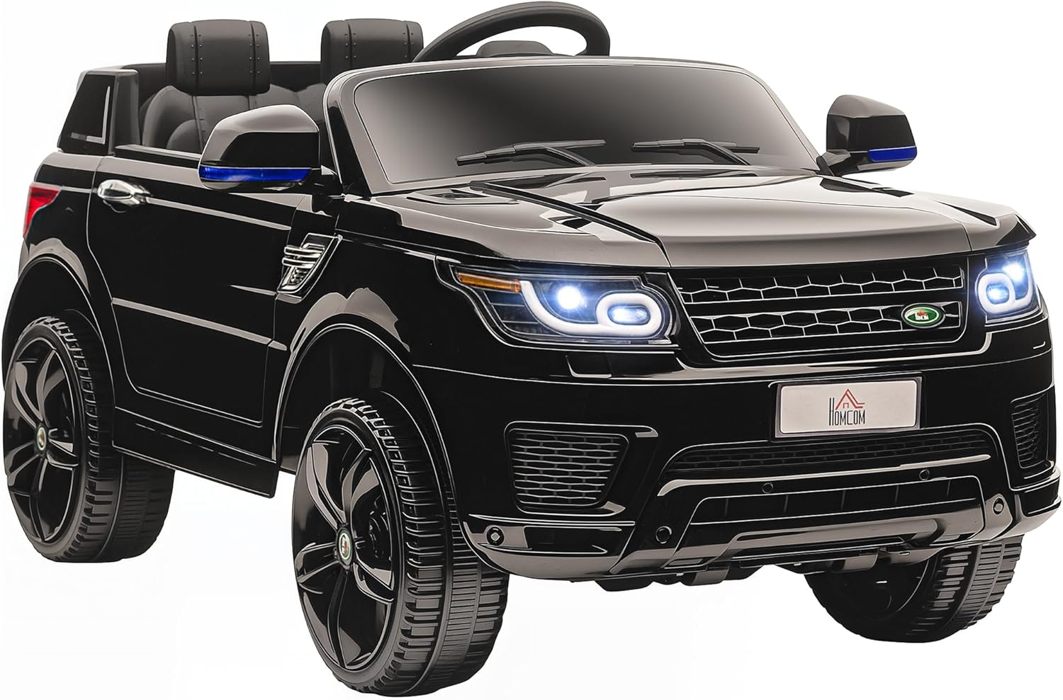 HOMCOM Coche Eléctrico SUV para Niños de 3-6 Años Coche de Batería 12V con 2 Motores Mando a Distancia Faros Bocina Música USB y Apertura de Puerta 3-5 km/h 110x68x52 cm Negro